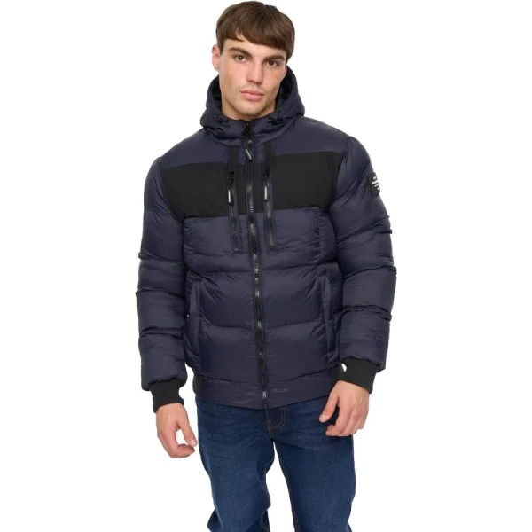 100% Polyester. Ontwerp: Logo, Patch. Mouw: Elastisch. Halslijn: Met kap. Mouwtype: Lange mouwen. Gevoerd, Gequilt. Zakjes: 2 Zijzakken, 2 Borstzakken, Binnenzak, Ritssluiting. Sluiting: Volledige ritssluiting. Zoom: Verstelbare toggle. L: 42 in. XL: 44 in. XXL: 46 in.