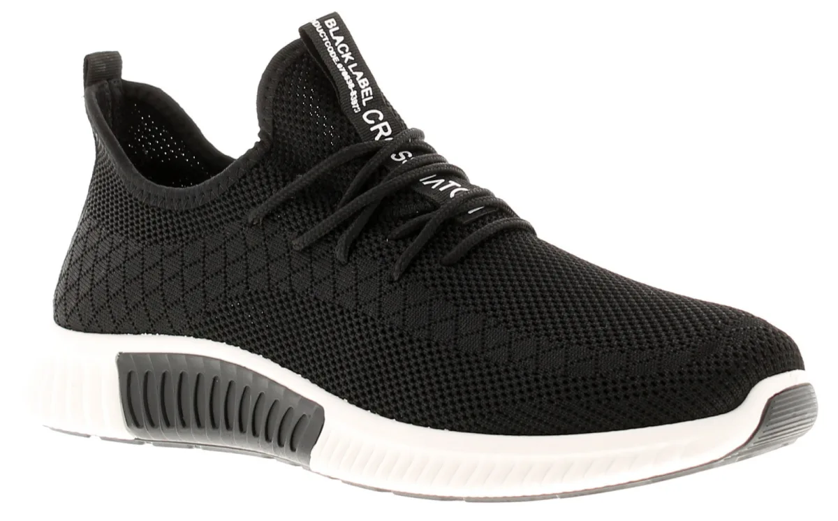 Crosshatch rideout heren sneakers zwart. Bovenwerk van stof. Stoffen bekleding. Synthetische zool. Heren mesh bovenste vettertrainer op injectiezool.
