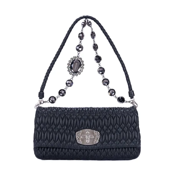 Miu Miu Accessoires Crystal Cloqué Clutch Clutch in de Black Kalfleer in de Silver hardware. Het product is in In Perfecte Staat (AA). Afmetingen: 27.5x13.5x3.5 cm Inclusief accessoires: 2 Strap BrandCo Paris vindt zeldzame artikelen in de beste staat voor ongelooflijke prijzen. Het is de moeite waard om geduldig te zijn! Koop met vertrouwen: alle artikelen van BrandCo Paris worden zorgvuldig geselecteerd en geverifieerd door ons team van experts. Alle artikelen worden geleverd met een certificaat van echtheid en verpakt door BrandCo Paris. Classificatietabel voor de conditie van het artikel: N (als nieuw) AA (perfecte staat) A (uitstekende staat) AB (zeer goede staat) B (goede/redelijke staat)
