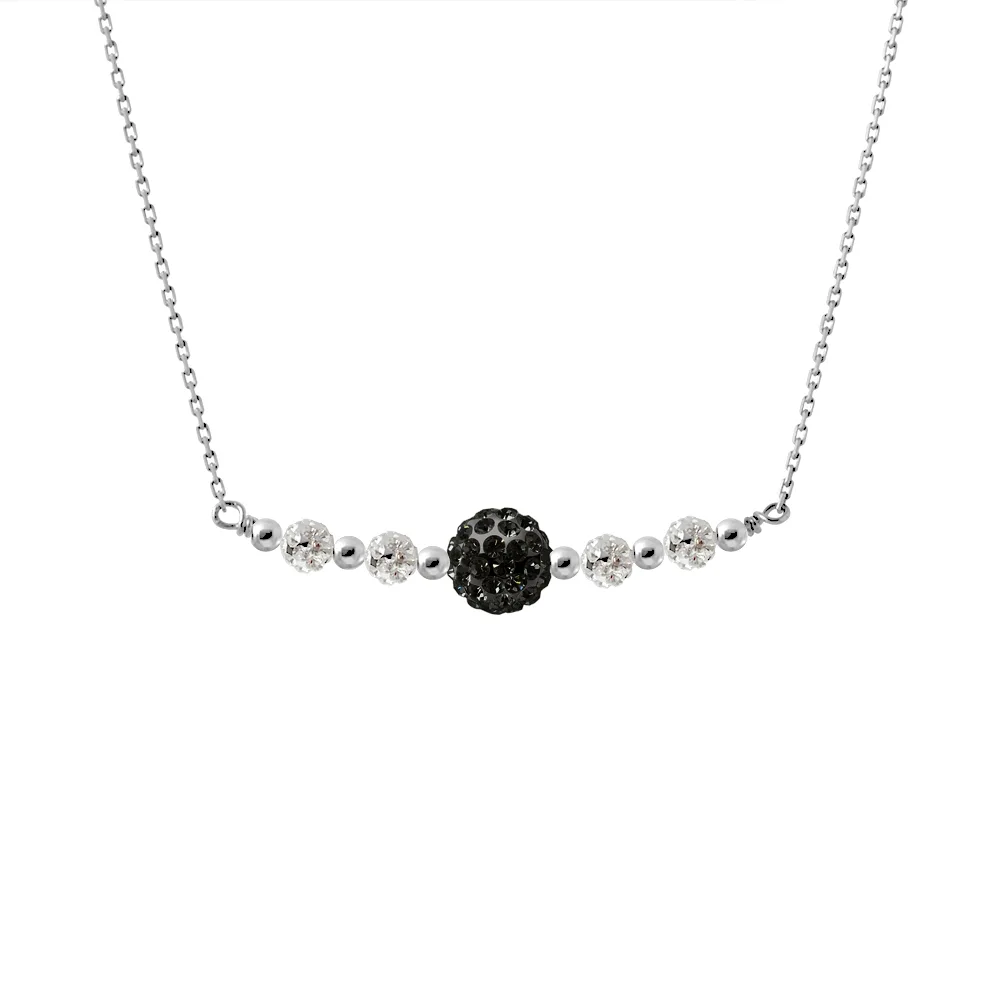 Ketting - Wit Crystal 4 mm - Zwarte Crystal Ball 8 mm - Zilver 925 Duizenden - Verstelbare lengte van 38 tot 42 cm - 2 jaar garantie tegen een defect van de fabricage - al onze juwelen bewijs van liefde worden in een doos geleverd met een certificaat van authenticiteit en een internationale garantie.