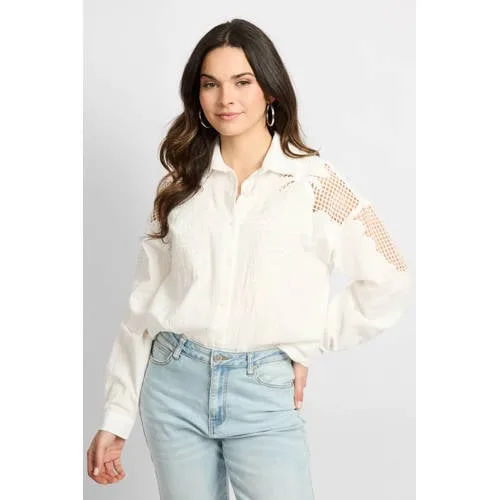De ecru dames blouse met borduursels van CS the Label geeft je outfit een lichte, vrouwelijke uitstraling. Het rechte model valt soepel om het lichaam, waardoor de blouse mooi langs je figuur valt zonder strak te zitten. De ecru kleur en effen basis worden subtiel aangevuld met fijne borduursels, wat zorgt voor een rustige maar verzorgde look. De blouse is gemaakt van 100% viscose, een soepele stof die prettig aanvoelt op de huid.Verfijnde details voor elke dag Gemaakt van 100% viscose voor een zachte, soepel vallende touch Rechtvallende pasvorm die luchtig om het lichaam valt Langemouwmodel met rechte mouwen voor een tijdloos silhouet Klassieke kraag en knoopsluiting voor een nette uitstraling Effen ecru kleur met subtiele borduursels voor een verfijnd accent Semi-transparant materiaal, ideaal voor een lichte, gelaagde look Zonder zakken voor een rustige en elegante voorkant Model is 180 cm en draagt maat S, wat helpt bij het inschatten van de lengteVeelzijdig in je garderobeDeze Lorraine blouse past goed bij zowel een nette broek als een casual jeans. Door de semi-transparante stof leent de blouse zich goed om te combineren met een top eronder, bijvoorbeeld in een vergelijkbare lichte tint.CS the Label stijlCS the Label staat voor draagbare mode met een vrouwelijke touch. De collecties combineren fijne materialen met doordachte details, zodat je je de hele dag verzorgd en comfortabel kunt kleden.Een lichte blouse die je eenvoudig meeneemt van een gewone dag naar een meer aangeklede gelegenheid.