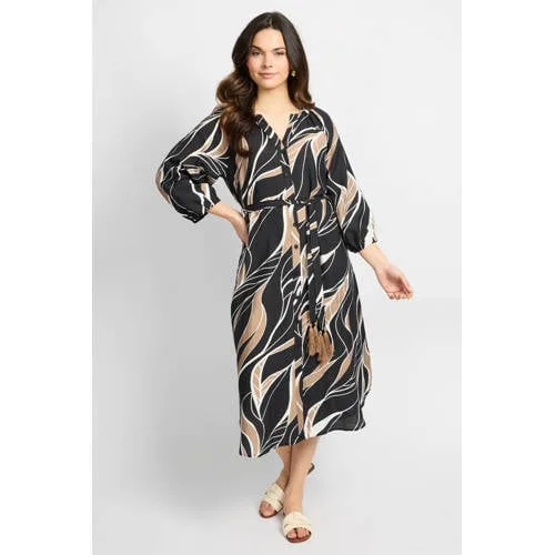 Zoek je een jurk die zowel naar je werk als naar een etentje kan? Dan is deze zwarte midi blousejurk met print van CS the Label een stijlvolle basis voor je garderobe. De middelhoge lengte en vrouwelijke pasvorm geven een elegante uitstraling, terwijl de all over print het geheel net wat speelser maakt. Dankzij de ceintuur kun je je taille makkelijk accentueren.Verfijnde details voor alledaagse stijl Middel lange jurk met all over print, ideaal voor zowel kantoor als casual momenten 3/4 ballonmouwen en pofmouwen voor een moderne, vrouwelijke look Ronde hals en doorknoopsluiting aan de voorkant Ceintuur in de taille voor een verstelbare en flatterende pasvorm Gemaakt van 88% viscose en 12% polyamide, de stof voelt soepel en licht aan op de huid Geen zakken, waardoor de jurk mooi slank langs het lichaam valt Model is 180cm en draagt maat S, handig als referentie voor de lengteGemakkelijk te stylen door het seizoen heenIn het voorjaar combineer je deze jurk met sneakers of loafers en een lichte jas. Voor een meer geklede look draag je er enkellaarsjes en subtiele sieraden bij. De zwarte kleur en tijdloze print maken het eenvoudig om de jurk steeds anders te stylen, zonder dat je enorm hoeft na te denken over je outfit.CS the Label: eigentijdse vrouwelijkheidCS the Label richt zich op moderne vrouwen die houden van vrouwelijke, draagbare mode met een actuele uitstraling. De collecties zijn ontworpen met oog voor pasvorm en fijne details, zodat je je de hele dag comfortabel en verzorgd voelt.Een veelzijdige jurk waar je seizoen na seizoen plezier van hebt.