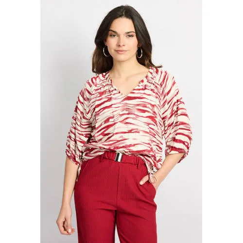 Breng kleur in je garderobe met deze rode viscose blousetop met all over print van CS the Label. De warme roodtint met all over dessin geeft direct een stijlvolle uitstraling, terwijl de soepelvallende stof mooi langs het lichaam valt. De V-hals en half lange, rechte mouwen zorgen voor een vrouwelijk en luchtig silhouet dat zowel casual als gekleder goed werkt.Details die het verschil maken Top met blousetop pasvorm, valt losjes rond het lichaam Kleur: rood met all over print voor een opvallende, maar rustige look Gemaakt van 100% viscose, een soepel en zacht aanvoelende stof V-hals die de halslijn mooi uit laat komen Half lange, rechte mouwen voor een luchtige en comfortabele fit Geen zakken, waardoor het silhouet mooi glad blijft Geschikt voor het voorjaar door de lichte stof en frisse print Modelinformatie: het model is 180cm en draagt maat SVeelzijdig te combineren in jouw dagelijkse looksDeze Luipa top uit de Feminine collectie combineer je makkelijk met een jeans voor elke dag, of met een nette broek voor een werkafspraak. De soepele viscose valt mooi in de taille, waardoor de top ook goed staat in combinatie met een rok met hoge taille.CS the Label voor vrouwelijke stijlCS the Label ontwerpt eigentijdse damesmode met aandacht voor pasvorm en draaggemak. De collecties sluiten aan op het dagelijkse leven, met items die je zowel naar je werk als in je vrije tijd kunt dragen. Zo voeg je met elk ontwerp een betrouwbare basic of blikvanger toe aan je garderobe.Een kleurrijke top die je gemakkelijk uit de kast pakt als je net iets meer uitstraling wilt, zonder in te leveren op comfort.
