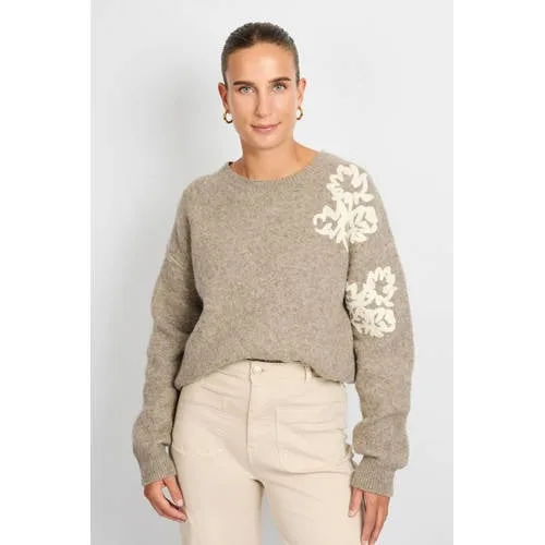 CS the Label gebloemde gebreide trui grijsbruin