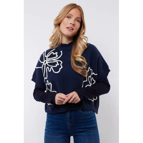 Deze trui van C&S The Label heeft lange rechte mouwen en een opstaande kraag. De trui is gemaakt van 100% polyamide. Je ziet borduursels op het ontwerp, wat zorgt voor een speels detail.