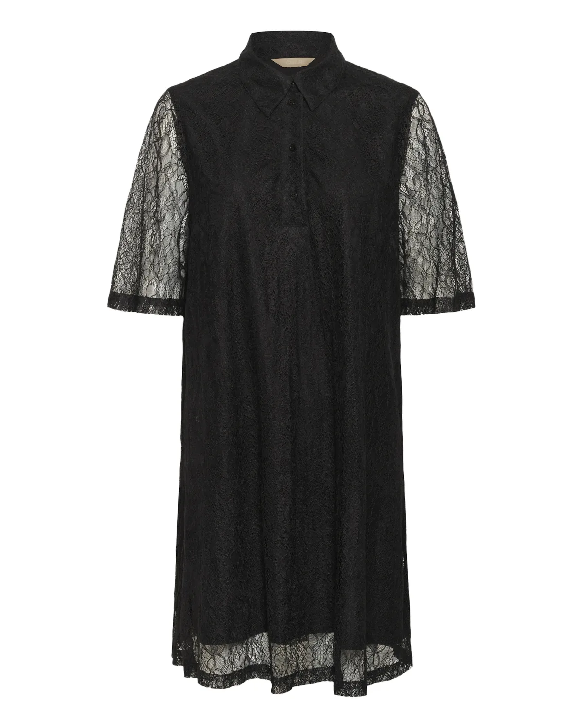 Design: Gevoerde zoom/rand, Met onderjurk; Type sluiting: Knoopsluiting; Halstype: Polokraag; Motief: Effen; Details: Kant, Plooien; Extra's: Met textuur; Lengte: Knielengte; Snit: Recht; Pasvorm: Losse pasvorm; Armlengte: Halve mouw