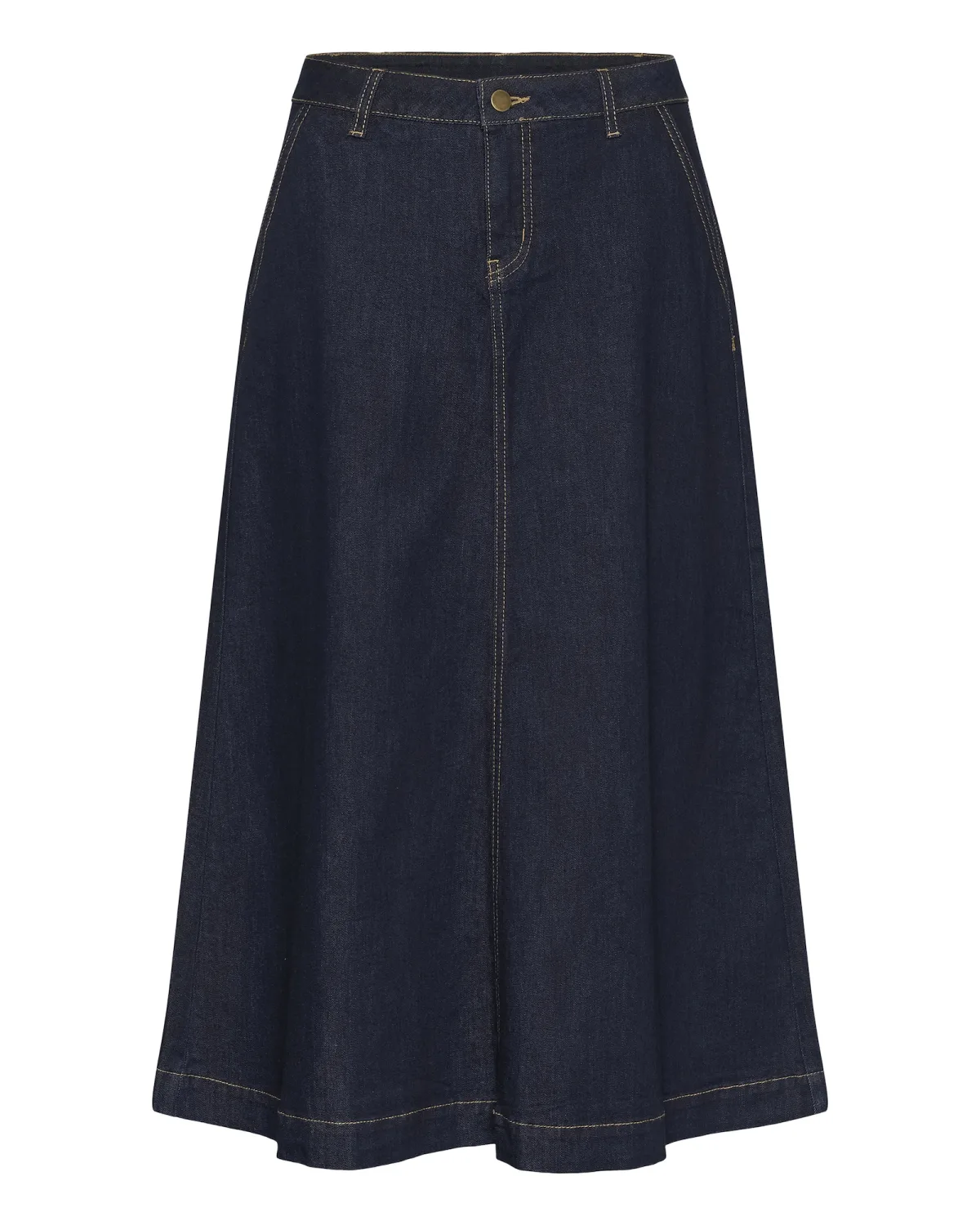 Design: Gevoerde zoom/rand, A-lijn, Ritssluiting, Zakken aan de zijkant, Knop sluiting; Materiaal: Denim; Motief: Effen; Rokvorm: A-lijn rok; Extra's: Contrasterende naden, Vaste grip, Riemlussen; Lengte: 7/8 lengte; Pasvorm: Normale pasvorm