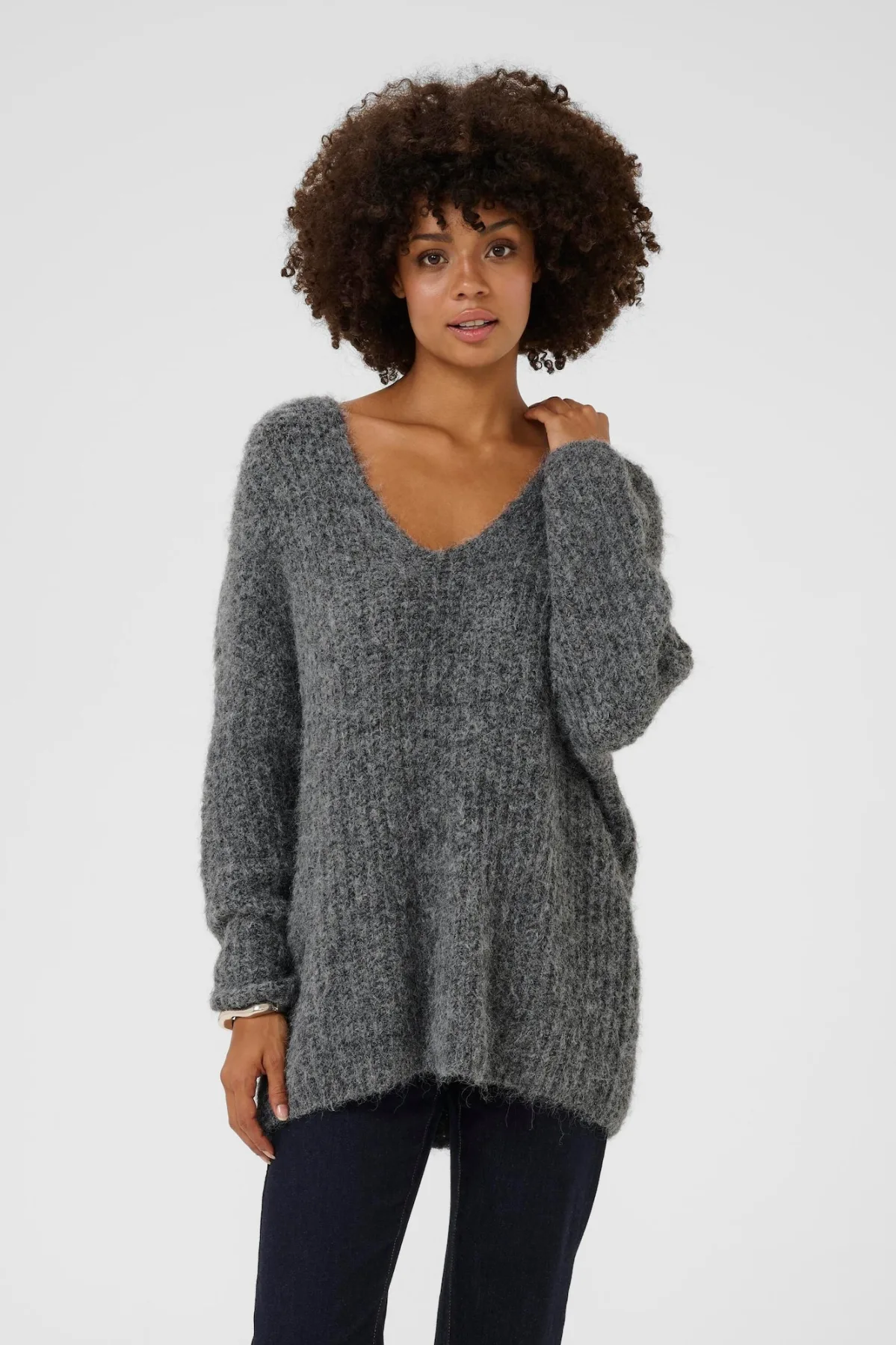 Design: Diepe snit/decolleté, Overcut schouder; Type sluiting: Slip; Materiaal: Gerecycled materiaal; Halstype: V-hals; Motief: Mélange; Extra's: Op staal naden; Pasvorm: Wijde pasvorm; Armlengte: Lange mouw; Lengte: Normale lengte