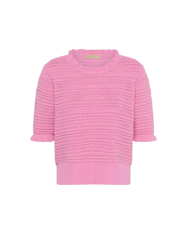 Design: Recht model, Geribd ceintuurtje; Type sluiting: Slip; Materiaal: Knitwear; Halstype: Ronde hals; Motief: Effen; Details: Mesh; Extra's: Op staal naden; Pasvorm: Normale pasvorm; Armlengte: Kwartmouw; Lengte: Normale lengte