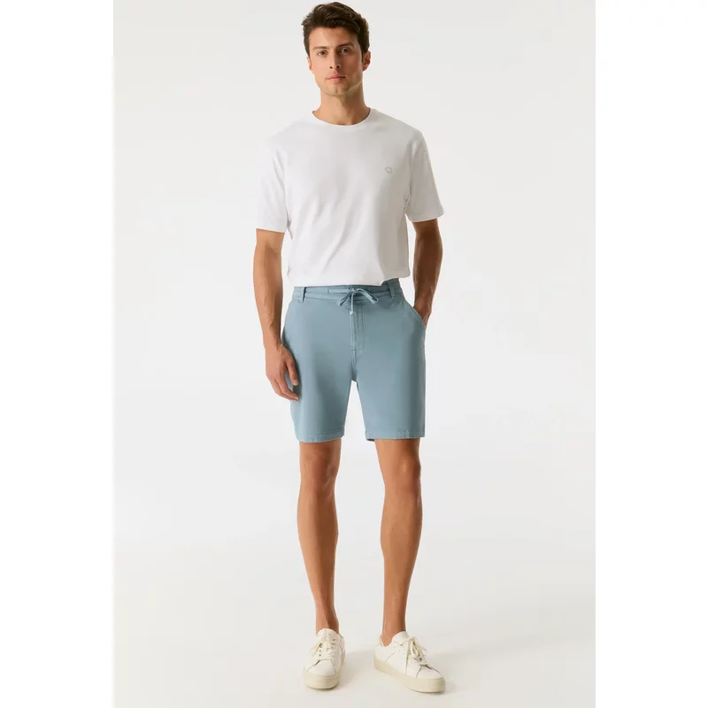 Comfort meets stijl! Deze Mid Waist Jogger Chino Shorts in een frisse Blue Stone wassing combineren het beste van twee werelden: de casual look van een chino en het draagcomfort van een jogger. Gemaakt van een soepele mix van 80% katoen, 18% polyester en 2% elastaan, bieden ze een perfecte regular fit met nét genoeg stretch. De middelhoge taille zorgt voor een ontspannen pasvorm, ideaal voor zomerse dagen. Draag ze met een basic tee of een luchtig overhemd voor een moeiteloos coole look.