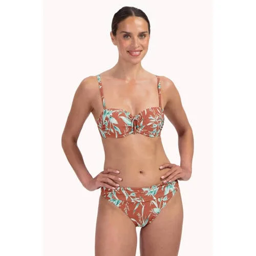 Ga stijlvol naar het strand met dit Cyell bikinibroekje lichtbruin/mintgroen. De subtiele bladprint in combinatie met glinsterende lurex accenten geeft een frisse, zomerse uitstraling. De normale taillehoogte en volledig bedekkende achterkant zorgen voor een comfortabele pasvorm waar je je vrij in kunt bewegen, of je nu aan het zwembad ligt of een wandeling langs de kust maakt.Comfortabele pasvorm met glinsterend detail Normale taillehoogte voor een natuurlijke en goede aansluiting rond je heupen Volledig bedekkende achterkant voor een zeker gevoel tijdens het zwemmen en zonnen Gemaakt van polyamide met elastaan en lurex voor een zachte, elastische en licht glanzende stof Bladprint in lichtbruin en mintgroen voor een frisse, moderne strandlook Lurex details geven een subtiele glans die mooi oplicht in de zon Niet omkeerbaar, waardoor de print en afwerking aan de buitenkant rustig en verzorgd blijven Handwas aanbevolen, niet geschikt voor droger en niet strijken voor het behoud van vorm en kleur Hygiëneadvies: badkleding altijd passen over je eigen ondergoedVoor ontspannen strand- en zwemmomentenDit bikinibroekje is een fijne basis voor je zwemoutfit. Combineer het met een bijpassend bikinitopje van Cyell in dezelfde print of in een effen kleur om je set compleet te maken. De soepele stof volgt je bewegingen makkelijk, wat praktisch is tijdens zwemmen, spelen met de kinderen of een ontspannen dag op je ligbed.Cyell: zorgvuldige designs met oog voor detailCyell staat bekend om modieuze badkleding met aandacht voor pasvorm en detail. De collecties worden ontworpen met zorg voor kleurgebruik, prints en comfortabele materialen, zodat je je op het strand en bij het zwembad op je gemak voelt. Met dit bikinibroekje kies je voor een doordacht ontwerp dat stijl en draaggemak combineert.Geschikt als je zoekt naar een bikinibroekje met een verzorgde uitstraling aan het water en een pasvorm die goed blijft zitten.