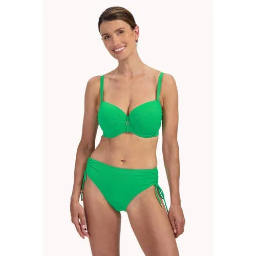 Ga voor een ontspannen strandgevoel met het Cyell high waist bikinibroekje Ladies Beach Briefs in groen. De hoge taille en volledig bedekkende achterkant geven een prettige dekking, terwijl de effen groene kleur met subtiele lurex draad voor een verfijnde glans zorgt. Ideaal als je een bikinibroekje zoekt dat jouw vormen mooi omsluit en toch modern oogt.Kenmerken van dit groene high waist broekje High waist bikinibroekje dat comfortabel hoog in de taille valt Volledig bedekkende achterkant voor een gevoel van zekerheid Effen groene kleur met lurex voor een lichte, glanzende finish Gemaakt van een zachte stof met polyamide en elastaan die soepel meebeweegt Goed te combineren met verschillende bikinitops van Cyell in groen of contrastkleuren Niet omkeerbaar, de binnenkant is rustig afgewerkt voor extra draagcomfortComfortabel aan strand en zwembadDit bikinibroekje is ontworpen voor ontspannen dagen aan zee of bij het zwembad. De stof sluit prettig aan zonder te knellen en blijft goed op zijn plek wanneer je zwemt of speelt met de kinderen. Voor een langere levensduur wordt handwas aangeraden, niet strijken en niet drogen in de droogtrommel. Uit hygiënisch oogpunt wordt badkleding altijd gepast over je eigen ondergoed, er worden geen hygiënestrips meer standaard toegevoegd.Cyell: zorgvuldige pasvormen en tijdloze badmodeCyell staat bekend om doordachte pasvormen en aandacht voor detail in bad- en nachtmode. Het merk werkt met vrouwelijke lijnen, fijne materialen en kleuren die lang mooi blijven, zodat je seizoen na seizoen plezier hebt van je badkleding. Met Cyell kies je voor een bikinibroekje dat er niet alleen mooi uitziet, maar ook prettig draagt.Een comfortabel groen bikinibroekje als basis voor jouw favoriete zomerse strandset.