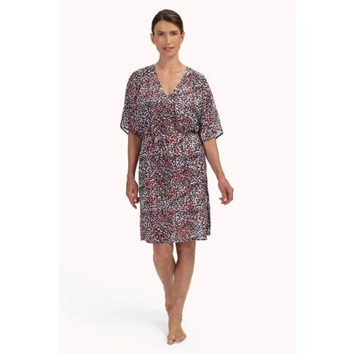 Stap ontspannen van strand naar boulevard met deze Cyell strandtuniek in zwart, ecru en subtiel roze. De luchtige tuniek valt soepel om je heen en geeft je badkleding net dat beetje extra bedekking, zonder zwaar of warm aan te voelen. De panterprint in zachte contrastkleuren zorgt voor een moderne, vrouwelijke look die mooi combineert met verschillende bikini's en badpakken.Details die je strandlook afmaken Zwarte basis met ecru en roze accenten voor een rustige panterprint Gemaakt van een licht, glad materiaal dat snel droogt na een dag aan zee of bij het zwembad Soepelvallend model dat prettig om het lichaam valt Ideaal over je bikini of badpak, van strandbed tot beachbar Geschikt voor standaardmaten, makkelijk te combineren met je bestaande beachwearComfortabel over je badkledingDeze strandtuniek is een handige laag over je bikini of badpak als je even wat meer bedekking wilt. Trek de tuniek simpel over je swimwear aan wanneer je een drankje gaat halen, een stukje gaat wandelen of op het terras gaat zitten. De soepele stof beweegt met je mee en voelt prettig op de huid, ook als het warm is.Cyell beachwear met karakterCyell staat bekend om bad- en beachwear met aandacht voor pasvorm, kleur en dessin. Ontwerpen worden gemaakt met oog voor detail, zodat ze goed aansluiten bij het vrouwelijke silhouet en comfortabel aanvoelen tijdens zon, zee en strand. Met deze strandtuniek kies je voor een doordacht ontwerp dat jouw swimwearcollectie stijlvol aanvult.Een verfijnde strandlaag die je stranddag net wat relaxter en stijlvoller maakt.
