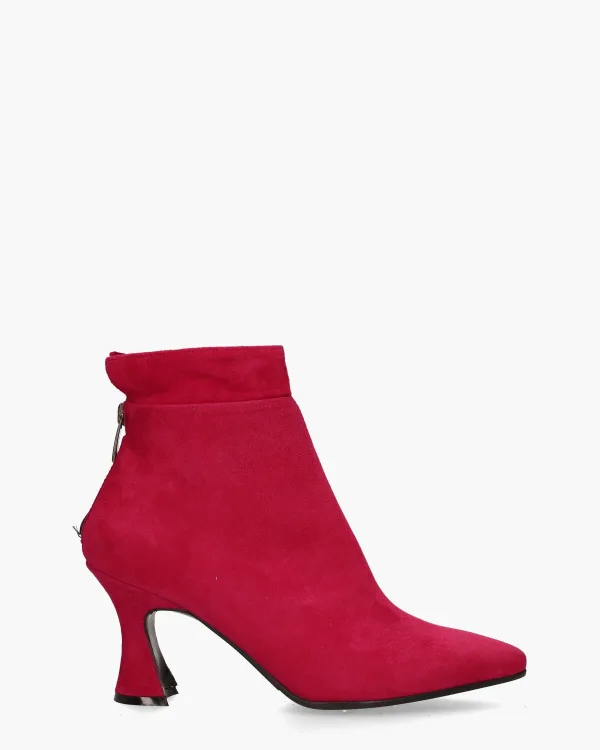 Enkellaarsje 9928 voor dames uit de collectie van Cypres. Deze booties hebben een upper van licht vintage gepoetst suède in een rode tint. De binnenkant is in leer uitgevoerd en heeft een vast voetbed. De schacht heeft een hoogte van circa 12,5 cm en is aan de bovenkant met een gestikte naad afgewerkt. De neus is spits en de queeniehak meet