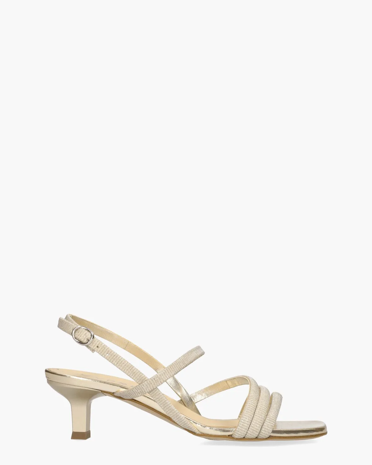 Deze Wesal sandalen voor dames van Cypres hebben een elegante uitstraling dankzij de stoffen asymmetrische bandjes die met goud en glitters zijn bekleed. Het hielbandje is verstelbaar met een zilverkleurig gespje. De matgouden kunststof hak heeft een hoogte van circa 5 cm. De binnenkant en het voetbedzijn van kunstleer gemaakt en de