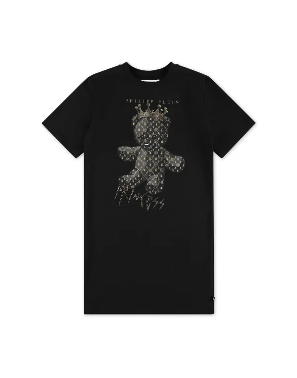 Deze dagjurk is een verfijnde Plein Kids essential en biedt comfort en gemak met een gestroomlijnd silhouet. Perfect te combineren met sneakers of sandalen voor een gepolijste alledaagse look. Zachte katoenmix voor ademend comfort Stretchcomponent zorgt voor flexibiliteit in beweging Klassieke snit ontworpen voor veelzijdige styling Lichtgewicht constructie ideaal voor dagelijks gebruik Subtiel merkdetail voor een luxe afwerking
