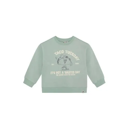 Deze zachtgroene Daily7 sweater voor jongens is gemaakt van 100% katoen en voelt zacht en soepel aan op de huid. De oversized pasvorm geeft een ontspannen look, terwijl de grafische printopdruk zorgt voor een duidelijk detail. Geschikt voor schooldagen, speelafspraken en relaxed thuis op de bank.Comfortabele sweater met stoere details Gemaakt van 100% katoen, prettig ademend materiaal voor elke dag Oversized pasvorm voor extra bewegingsvrijheid tijdens spelen en rennen Zachtgroene kleur die makkelijk combineert met jeans, joggers of shorts Ronde hals en lange mouwen voor een comfortabele, rustige look Geribde boorden bij hals, mouwen en zoom zodat alles mooi op zijn plek blijft Sweatkwaliteit met printopdruk voor een ontspannen uitstraling Geschikt als co-ord set, goed te dragen met een bijpassend onderstuk uit dezelfde lijn Praktisch in onderhoud, wasbaar op 30 graden en lauw strijkbaarIdeaal voor peuters, kleuters en schoolkidsDeze trui is geschikt voor peuters, kleuters en schoolkinderen en kan het hele jaar door gedragen worden. In de winter met een T-shirt eronder en in de lente of herfst als losse laag. De sweater heeft geen zakken en geen sluiting, zodat aankleden snel en eenvoudig gaat.Daily7, speelse stijl voor elke dagDaily7 maakt kinderkleding die past bij drukke dagen vol avontuur. Met aandacht voor draagcomfort, doordachte pasvormen en eigentijdse kleuren zijn de items makkelijk te combineren in de kledingkast. Zo wordt aankleden overzichtelijk en loopt je kind er elke dag verzorgd bij.Een ontspannen sweater waarmee je kind zich vrij kan bewegen, van de eerste speelronde tot het laatste verhaaltje van de dag.