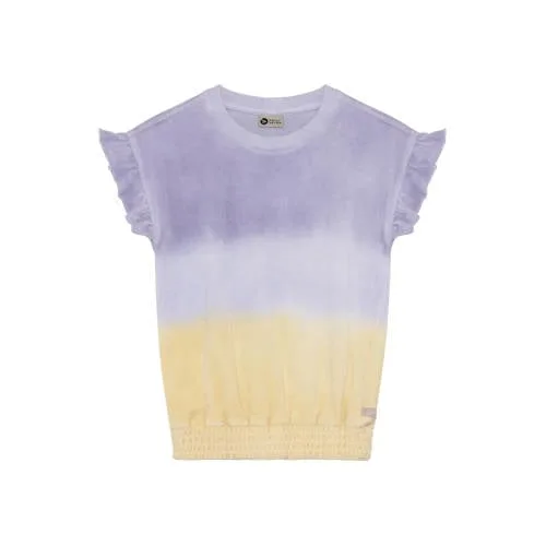 Met dit lila-gele meisjes T-shirt van katoen van Daily7 krijgt de outfit van je kind direct een speelse en frisse uitstraling. De zachte badstoflook en het dip-dye effect zorgen samen voor een vrolijke, zomerse stijl. Dankzij de boxy pasvorm met kapmouwtjes kan je kind vrij bewegen, terwijl de ronde hals soepel aansluit. Ideaal voor warme dagen, spelen in de tuin of een dagje weg.Vrolijke details en comfortabele pasvorm Zachte stof van 100% katoen, prettig op de gevoelige kinderhuid Dip-dye print in lila/geel voor een speels kleurverloop Boxy pasvorm geeft extra bewegingsruimte voor actief spelen Kapmouwen met ruches voor een subtiel, sierlijk effect Elastische boord die het shirt mooi op zijn plek houdt Ronde hals, makkelijk aan en uit te trekken Geen zakken voor een rustige, comfortabele look Wasbaar op 30 graden en lauw strijkbaar (1 punt)Ideaal voor alledaagse avonturenDit T-shirt is geschikt voor baby, peuter en kleuter en past goed bij een korte broek, een legging of een luchtig rokje. De soepele stof en elastische boord maken het shirt praktisch voor de opvang, school of een dag vol spelen.Daily7 voor moderne kidsDaily7 richt zich op kinderkleding die aansluit bij het dagelijks leven van actieve kinderen. De ontwerpen combineren comfortabele pasvormen met eigentijdse kleuren en prints. Zo krijgt je kind kleding die prettig draagt en er tegelijk modern uitziet.Een vrolijk T-shirt dat erom vraagt om elke zonnige dag te worden gedragen.