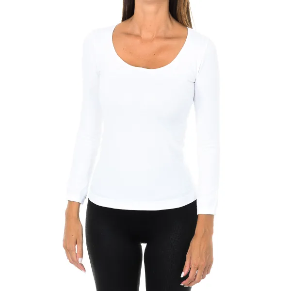 Dakota-T-Shirt mit langen Ärmeln. weiße Farbe Aus hochwertiger Mikrofaser. Rundhals. Sehr elastischer und leichter Stoff. Rippbündchen. Ohne Stiche. Komposition: - 92 % Polyamid - 8 % Elasthan. Pflege: - Waschen bei einer Temperatur von max.30º. - Benutzen Sie keine Bleiche. - Verwenden Sie keinen Trockner. - Kein Bügeln. - Reinige chemisch nicht.