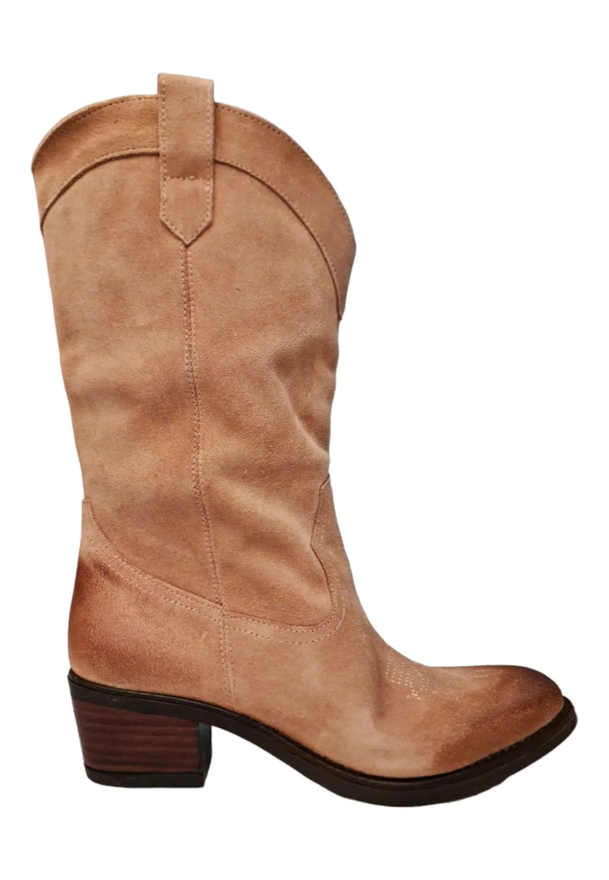 Cowboystiefel aus Leder, spitze kubanische Spitze, ohne Schnürsenkel, rutschfeste Sohle