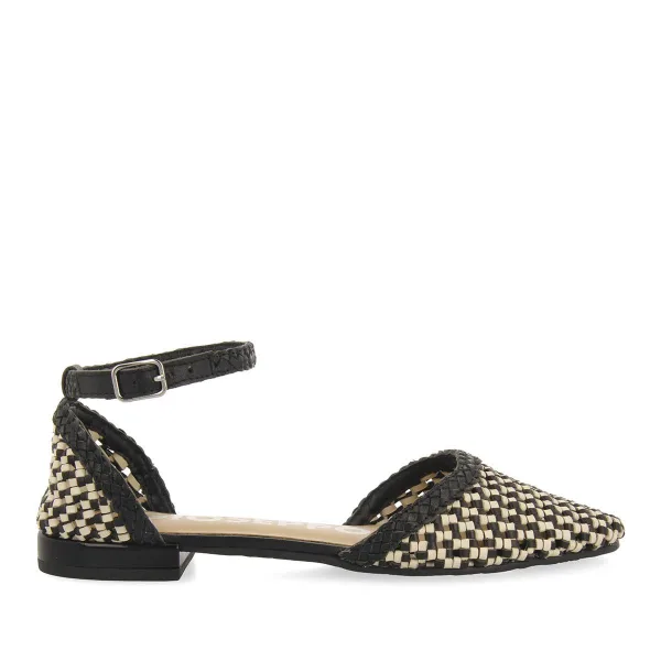 Koop ze! Ballerina's van goudkleurig geweven leer met ronde neus en gesloten hiel met geweven riempje. Verstelbare sluiting voor een betere pasvorm. Leren voering. Zeer comfortabele gewatteerde binnenzool van leer dat is gelooid met een duurzamer looiproces volgens de normen van de Leather Working Group. Flexibele zool. Mis de nieuwe SS24 ballerina collectie van Gioseppo Woman niet. Hakhoogte 1,5 cm.