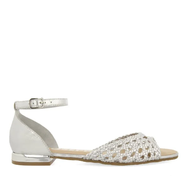 Een must-have van dit seizoen. Ballerina's met open teen in zilverkleurig geweven leer. Ze hebben een verstelbaar enkelbandje voor extra comfort. Leren voering. Zeer comfortabele binnenzool met kussentjes, gemaakt van leer dat duurzaam is gelooid volgens de normen van Leather Working Group. Flexibele zool. Ontdek de nieuwe SS24 ballerina's collectie op Gioseppo Woman. Hakhoogte 1,5 cm.