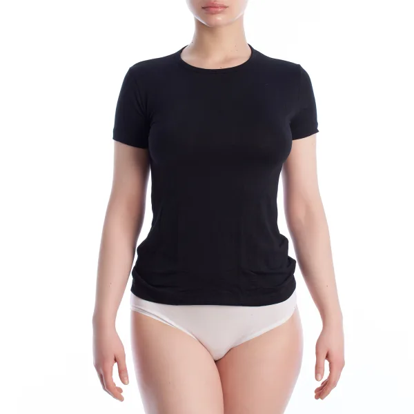 Dames onderhemd met korte mouwen, gemaakt van hoogwaardig bamboe stof, ontworpen voor zachtheid, comfort en ademend vermogen voor dagelijks gebruik. De lichte afwerking en aangename voel zorgen ervoor dat het een essentiële basisgarderobe is. Gemaakt van 95% bamboe en 5% elastaan, onderscheidt dit t-shirt zich door zijn ultra-zachte gevoel en uitstekende elasticiteit, die zich natuurlijk aan het lichaam aanpast. Bamboe stof staat bekend om zijn vochtregulerende en ademende eigenschappen, waardoor de huid de hele dag koel en droog blijft. Het ontwerp met korte mouwen en een ronde hals biedt een comfortabele en veelzijdige pasvorm, ideaal om als onderhemd onder andere kleding te dragen of als basis in dagelijkse looks. Een functioneel, lichtgewicht en comfortabel kledingstuk, ontworpen voor degenen die op zoek zijn naar zachtheid en een natuurlijke pasvorm in hun ondergoed. Productkenmerken: - Kledingstuk type: Dames onderhemd met korte mouwen. - Ontwerp: Ronde hals en korte mouwen. - Pasvorm: Elastisch en aanpasbaar aan het lichaam. - Stof: 95% bamboe en 5% elastaan, zacht en ademend. - Gebruik: Onderhemd of basis kledingstuk voor dagelijks gebruik. Samenstelling: 95% Bamboe, 5% Elastaan Onderhoud: Wassen op maximale temperatuur 40º. Geen bleekmiddel gebruiken. Niet in de droger drogen. Niet strijken. Niet chemisch reinigen.