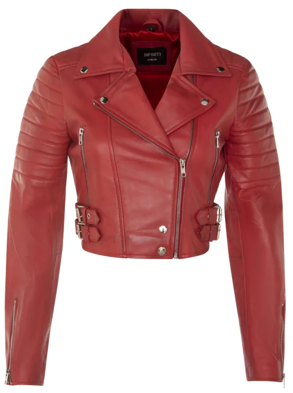Dames bijgesneden Brando leren bikerjack-Damascus Prijzen