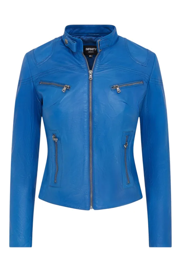 Dames blauw slim-fit leren bikerjack – Maldon