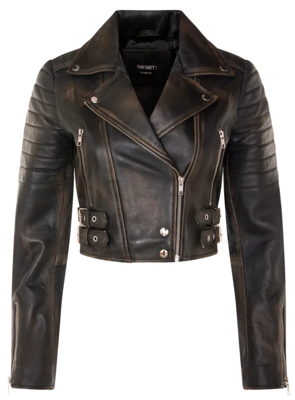 Dames Brando bijgesneden leren jas-Longtown Prijzen