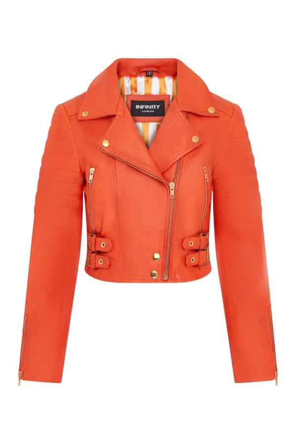 Dames Brando Cropped Oranje Leren Jas – Longtown Prijzen
