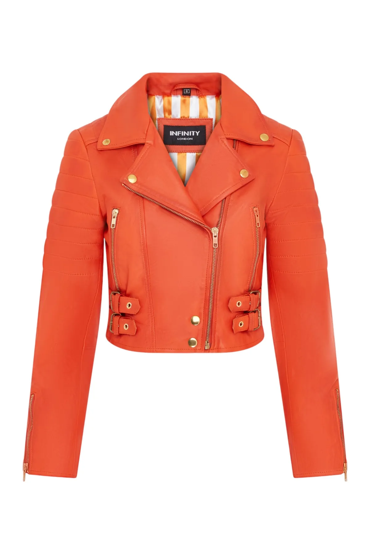 Dames Brando Cropped Oranje Leren Jas Longtown