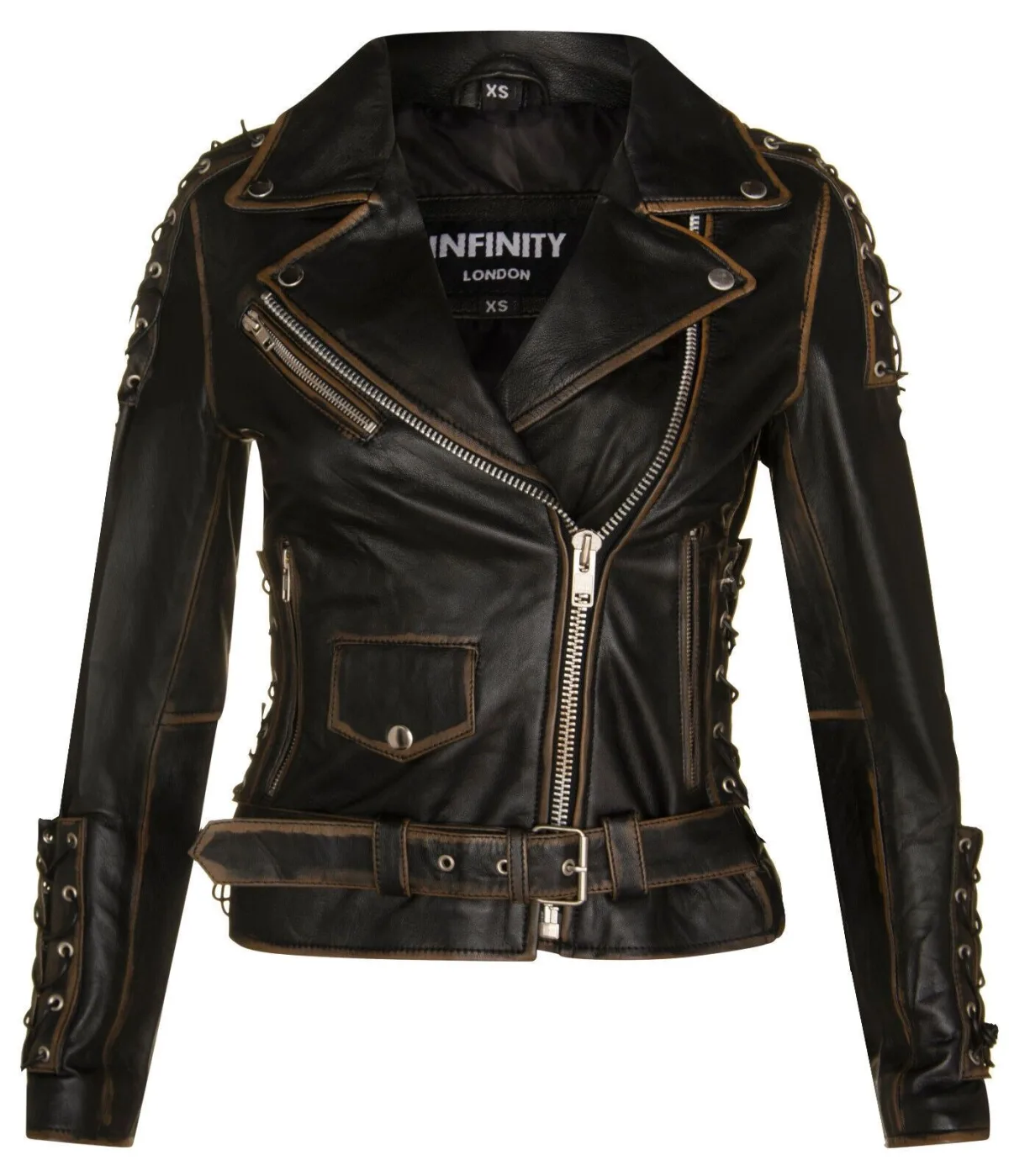 Dames Brando zwart leren bikerjack-Bari Prijzen