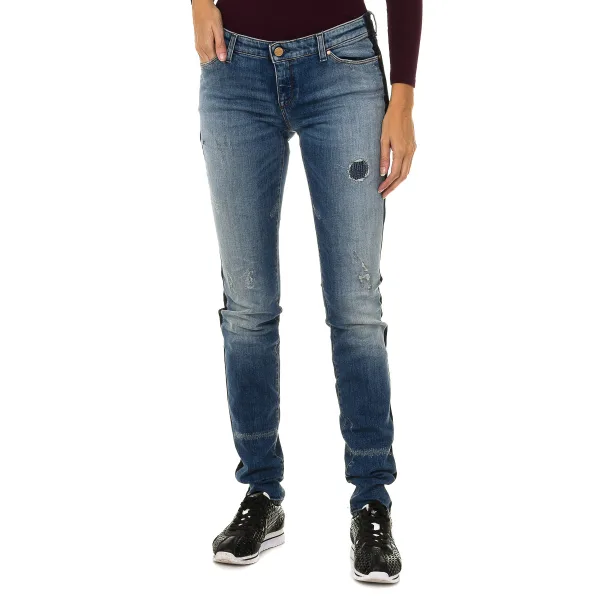 Lange jeans. Kleur blauw Riem met riemlussen. Rits- en knoopsluiting aan de voorkant. Twee zakken aan de voorkant en een minizakje. Twee zakken op de achterkant met het metallic logo. Gescheurd en versleten effect. Bijpassende naden. Samenstelling: 98% Katoen – 2% Elastaan. Wasvoorschriften: – Maximaal wassen op 30ºC. – Strijken op gemiddelde temperatuur, max. 110 ° C. – Je kunt een droger gebruiken. – Gebruik geen bleekmiddel. – Kan niet chemisch gereinigd worden. Samenstelling: 98% Katoen, 2% Elastaan Onderhoud: Maximaal wassen op 30ºC. – Strijken op gemiddelde temperatuur, max. 110ºC. – Kan in de droger. – Geen bleekmiddel gebruiken. – Kan niet chemisch gereinigd worden.