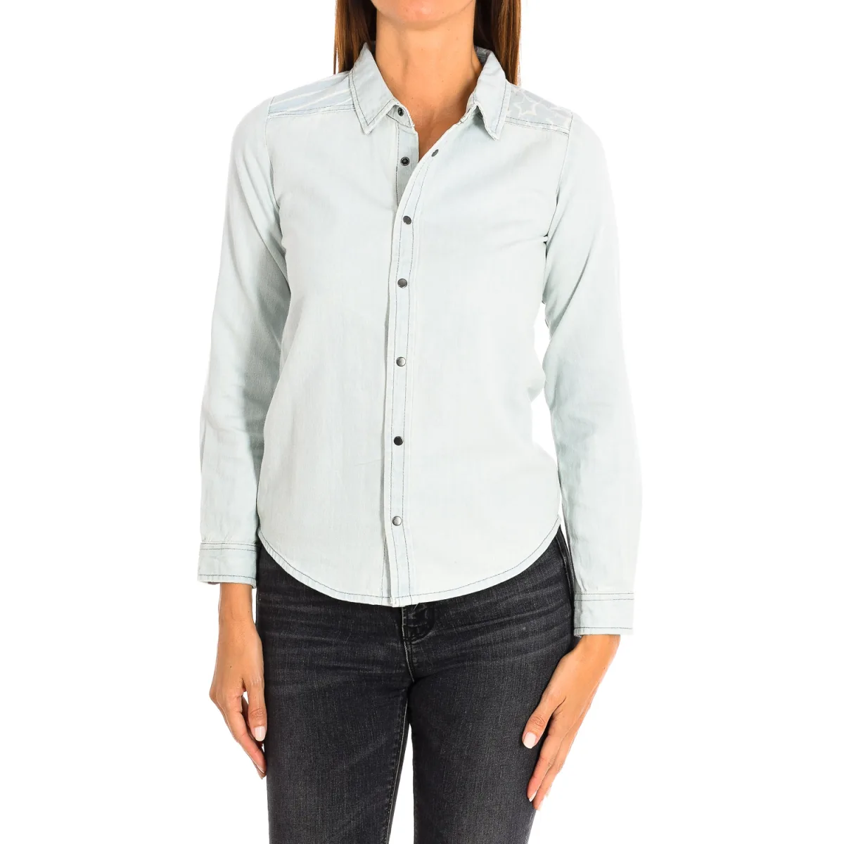 Dames denim shirt met lange mouwen 8381 Prijzen