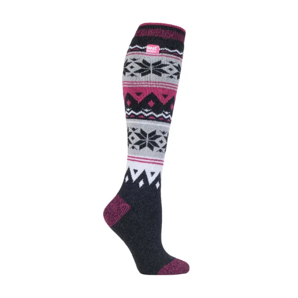 Dames Heat Holders Lite Lange Sokken: De nieuwe Heat Holders Lite Sokken zijn hier! Nu in een extra lange stijl! De makers van Heat Holders hebben geluisterd naar de verzoeken van klanten om een thermosok te creëren die niet zo dik is, waardoor Heat Holders nu in een normale nette schoen of trainer past. Maar een solide tog-waarde van 1.6 betekent dat je voeten nog steeds extreem warm kunnen zijn! Met vele geweldige gemêleerde twist-stijlen om uit te kiezen, zullen je voeten elegant en warm zijn tegelijkertijd, wie wil dat nu niet? Deze versie van de Heat Holders Lite sokken is extra lang en komt net onder de knie, wat je meer warmte voor je hele been geeft. Hoofdkenmerken. Heat Holders Garens - Onze speciaal ontwikkelde thermogaren bieden hoge prestaties in isolatie tegen kou met superieure vochtdoorlatende eigenschappen. Heat Holders Lussen - Innovatieve breitechnologie produceert onze unieke, extra lange lussen die meer warme lucht vasthouden, wat de TOG-waarde verhoogt. Heat Holders Borstelen - Ten slotte maximaliseert ons deskundige borstelsproces de hoeveelheid warme lucht die in elke sok wordt vastgehouden voor totale warmte en comfort de hele dag. Heat Holders Lite Lange Tog-waarde - Deze sokken zijn wetenschappelijk getest en zijn 5x warmer dan een basis katoenen sok, met een tog-waarde van 1.6. Deze nieuwe versie van Heat Holders lost het 'te dik' element van de originele Heat Holders op. Deze sokken zijn gemaakt van 91% Acryl, 5% Nylon, 3% Polyester, 1% Elastaan en zijn verkrijgbaar in damesmaat 4-8 UK.