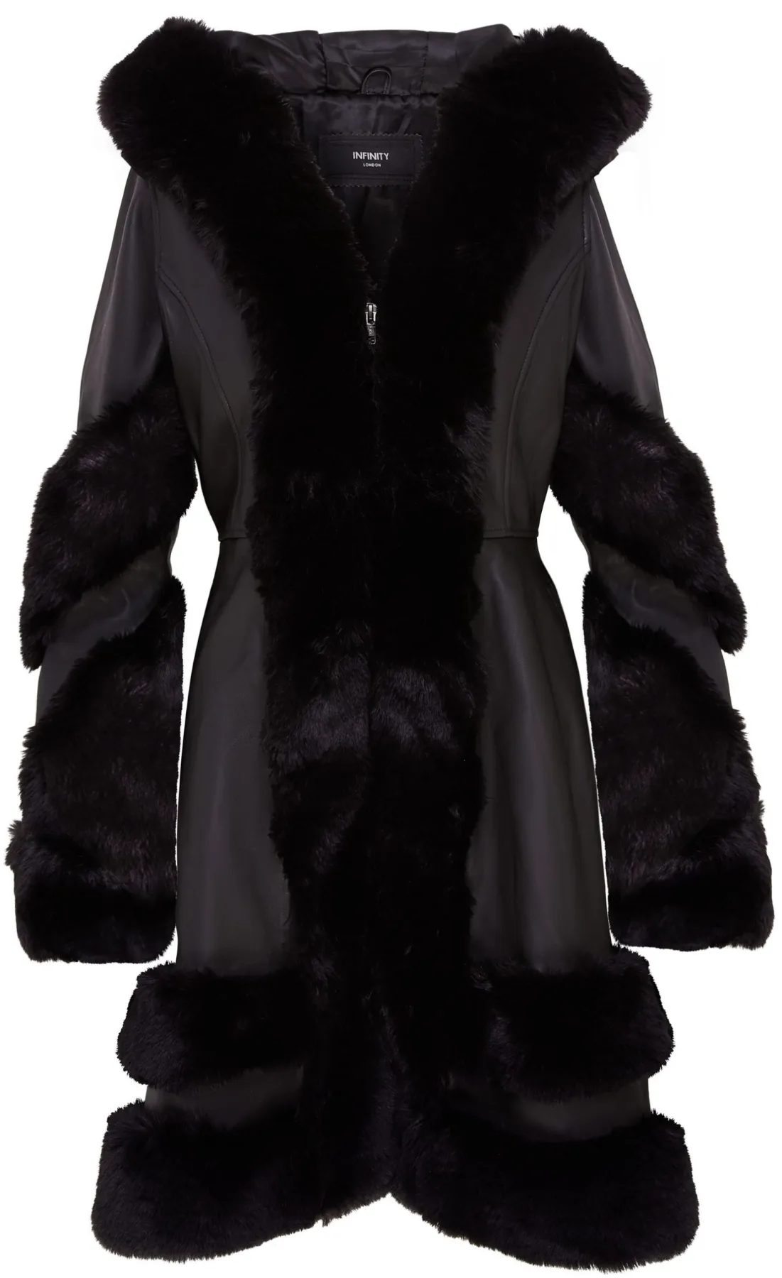 Dames Flared Zwarte Leren Capuchonjas Met Bont – Mandal