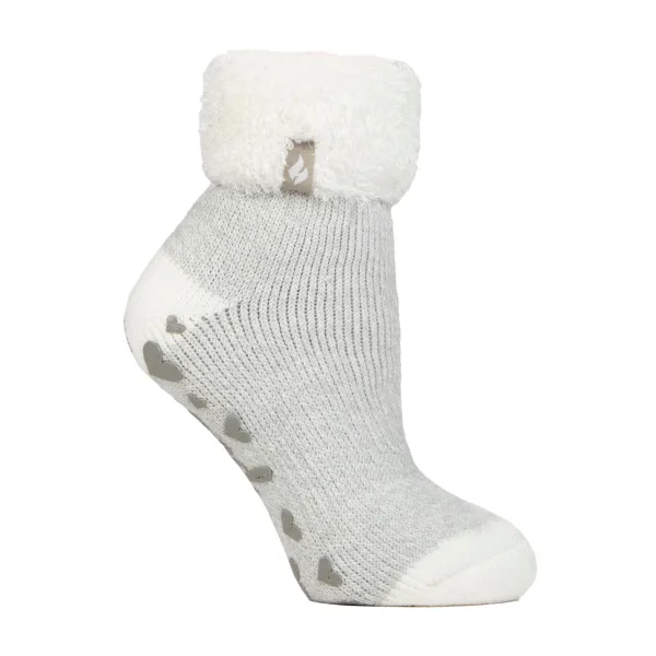 Dames Dikke Slippersokken: Dezelfde gezelligheid en warmte als de originele Heat Holders thermosok, maar in een kortere enkel lengte. Deze slippersokken zijn een geweldig cadeau, of het nu voor een verjaardag of een andere gelegenheid is. Er zijn 3 verschillende stijlen om uit te kiezen, waaronder; geribbelde omslagmanchet, veren omslagmanchet en een veren rand. De veren omslagmanchet en veren bovenkant dragen bij aan het comfort en de warmte van de sokken. De geribbelde omslagmanchet voegt stijl toe aan de sok terwijl het een robuustere uitstraling geeft dan de veren. Onze geavanceerde thermische garen biedt hoge prestaties in isolatie tegen de kou, met superieure ademende eigenschappen voor vocht en zachtheid. Onze innovatieve breitechnologie produceert onze unieke, kort geluschte kussenpool om meer warme lucht vast te houden, wat de warmte verhoogt. Ons deskundige borstelproces maximaliseert de hoeveelheid warme lucht die in elke sok wordt vastgehouden voor ongelooflijke totale warmte en comfort gedurende de hele dag. Deze sokken worden geleverd in een verpakking van 1 paar en zijn verkrijgbaar in 6 kleuren en stijlen. Ze zijn beschikbaar in maten 4-8 UK / 37-42 EU / 5-9 US en zijn gemaakt van een mix van acryl, polyester, nylon en elastaan. Ze zijn machinewasbaar. Extra productdetails: - Heat Holders - Maten 4-8 UK / 37-42 EU / 5-9 US - 1 Paar - Geribbelde omslagmanchet - Veren-top - 2 Kleuren - Machinewasbaar