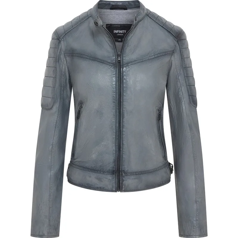 Dames Grijs Retro Gewatteerd Leren Bikerjack – Horten Prijzen