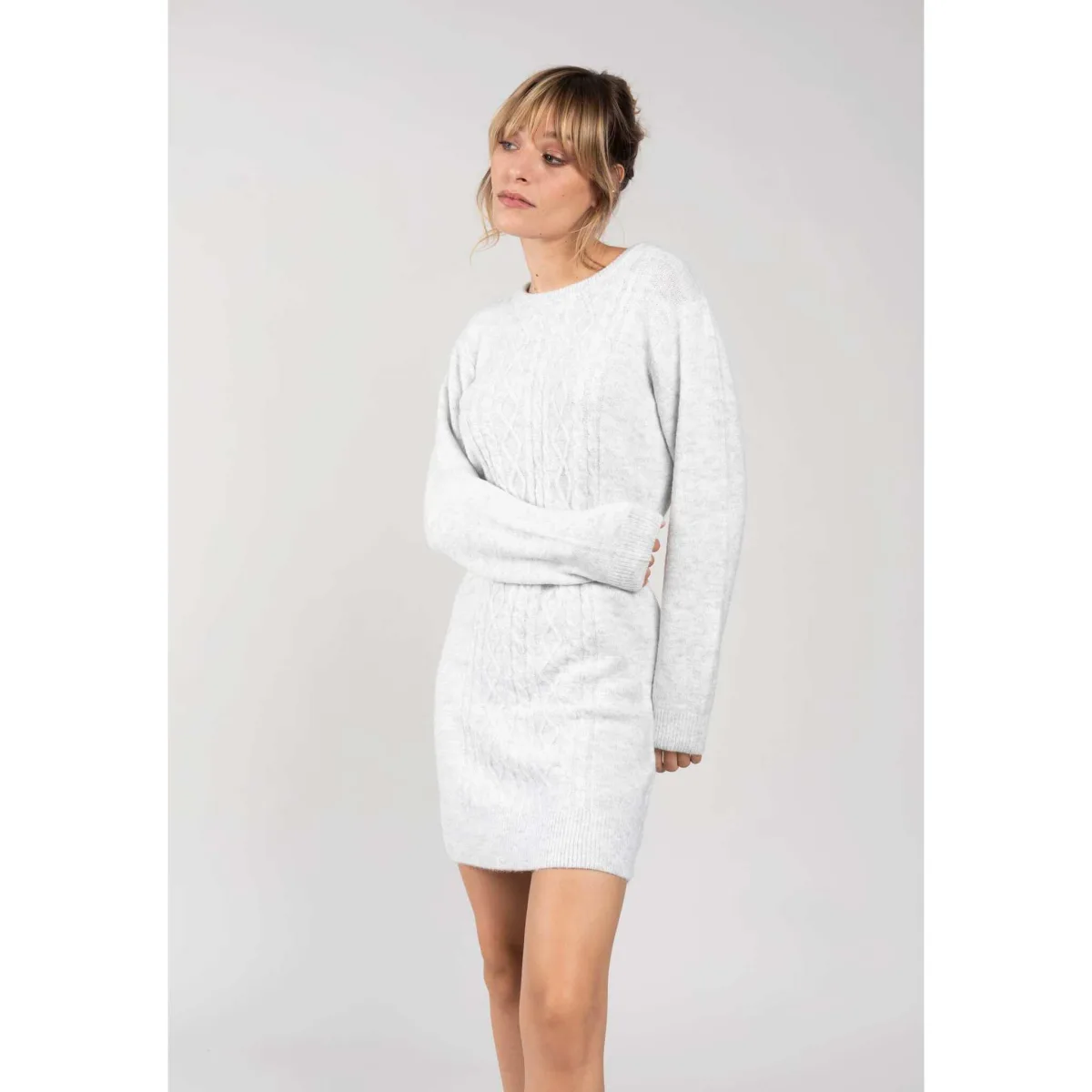 - De laagste prijs van DEELUXE Kabelgebreide trui jurk ANDRESSA Light Grey Mel werd gevonden op 23 april 2026 17:46.