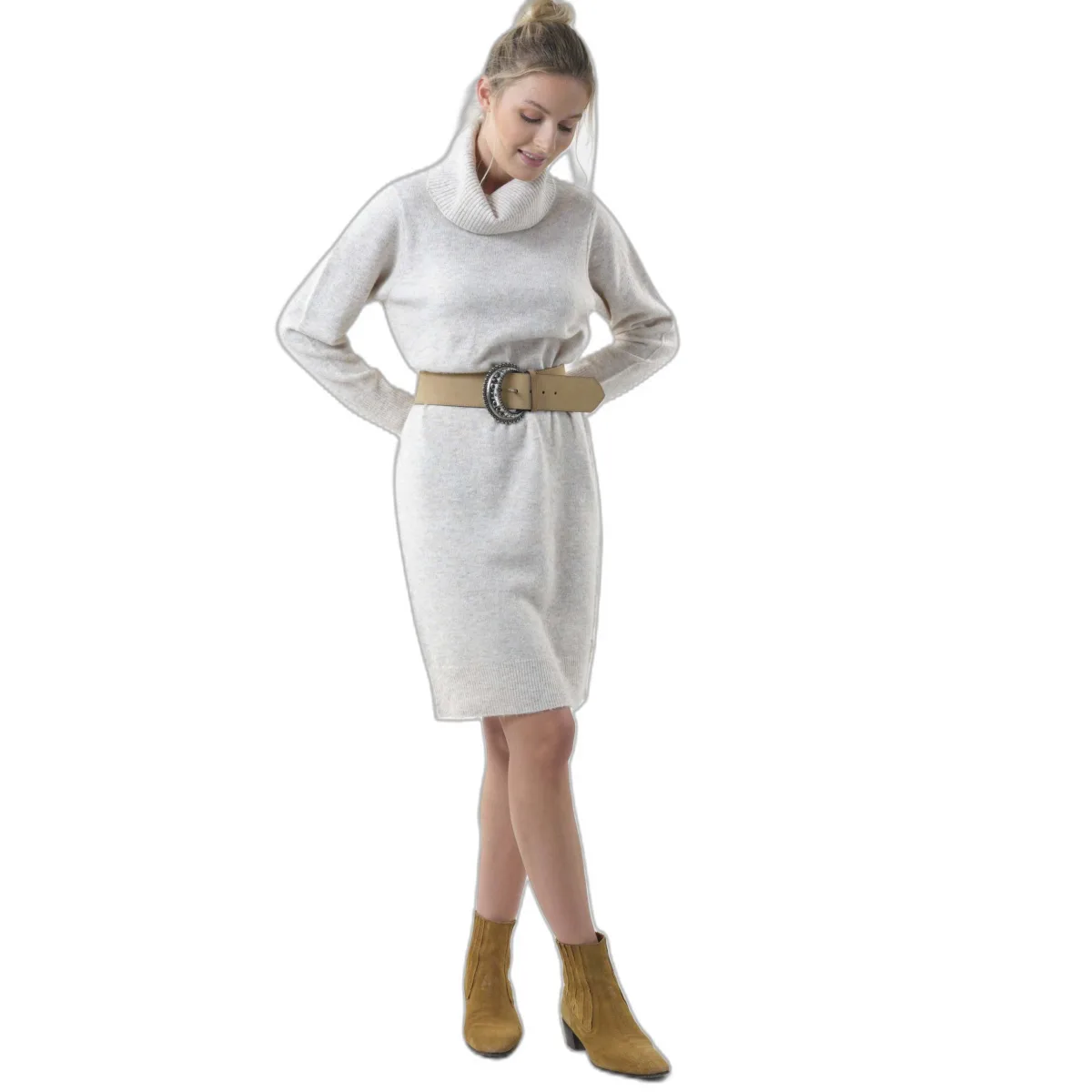 Kies voor ons model MILA, met zijn zachte breisel en col.Deze elegante, comfortabele en warme knielange jurk is gemaakt van een materiaal dat gerecyclede vezels bevat.35%ACRYL 25%POLYESTER 22%GERECYCLED POLYESTER 15%NYLON 3%ELASTHAAN
