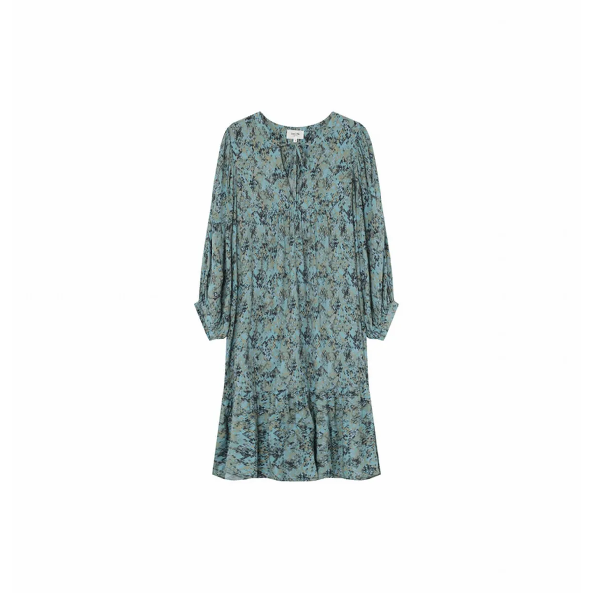 Grace & Mila damesjurk EmyHet model Emy is een babydolljurkje met lange mouwen, een ronde halslijn met strikdetails en geplooide schouders.Kenmerken:Familie: JurkenKleur: GroenMateriaal: 55% Rayon 45% Viscose
