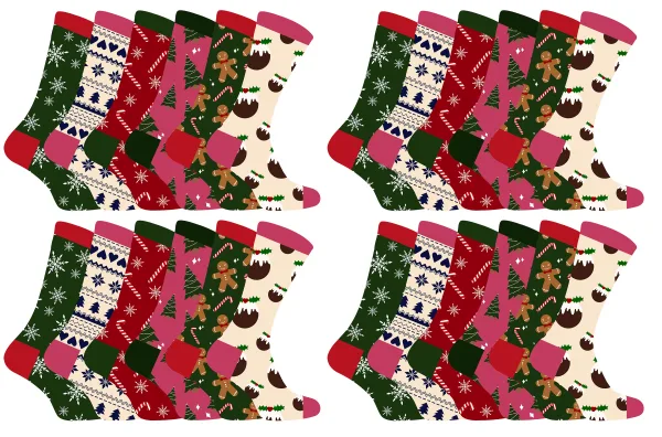 Dames kleurrijke nieuwe kerstsokken – 24 Pack Prijzen