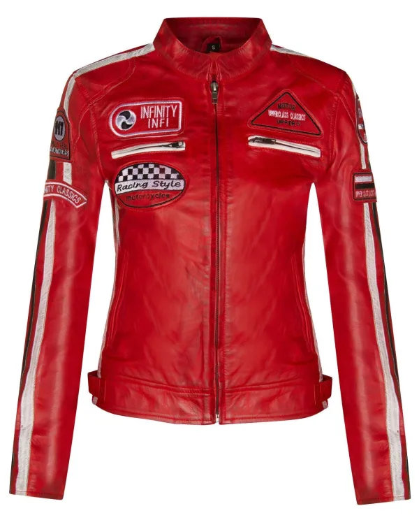 Dames lederen biker racebadges jas-Agadir