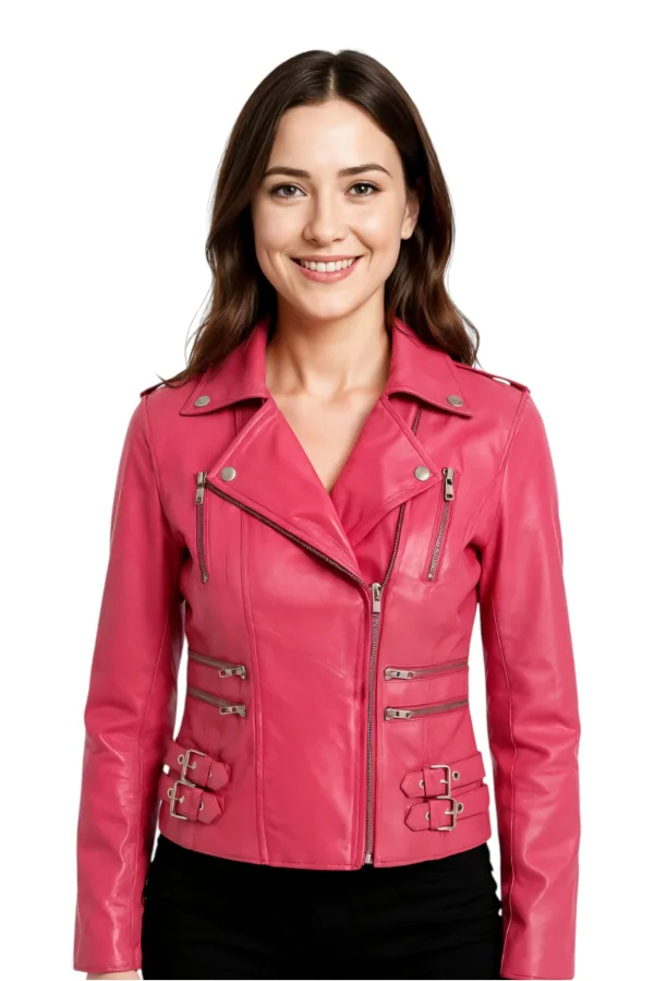 Dames leren fuchsia roze Brando bikerjack – Constantia