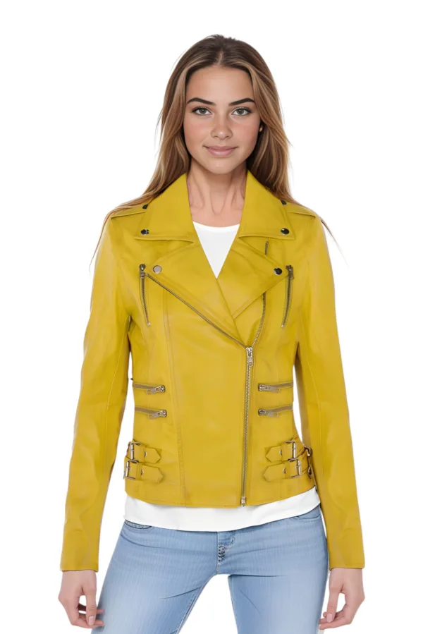 Dames leren gele Brando bikerjack – Constantia Prijzen