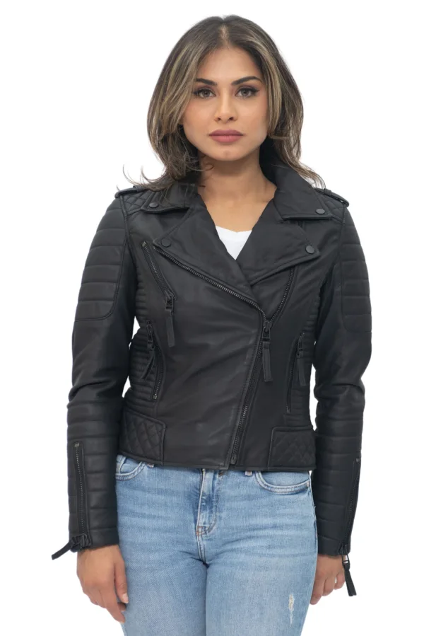 Dames leren gewatteerde vintage Brando bikerjack-Lusaka Prijzen