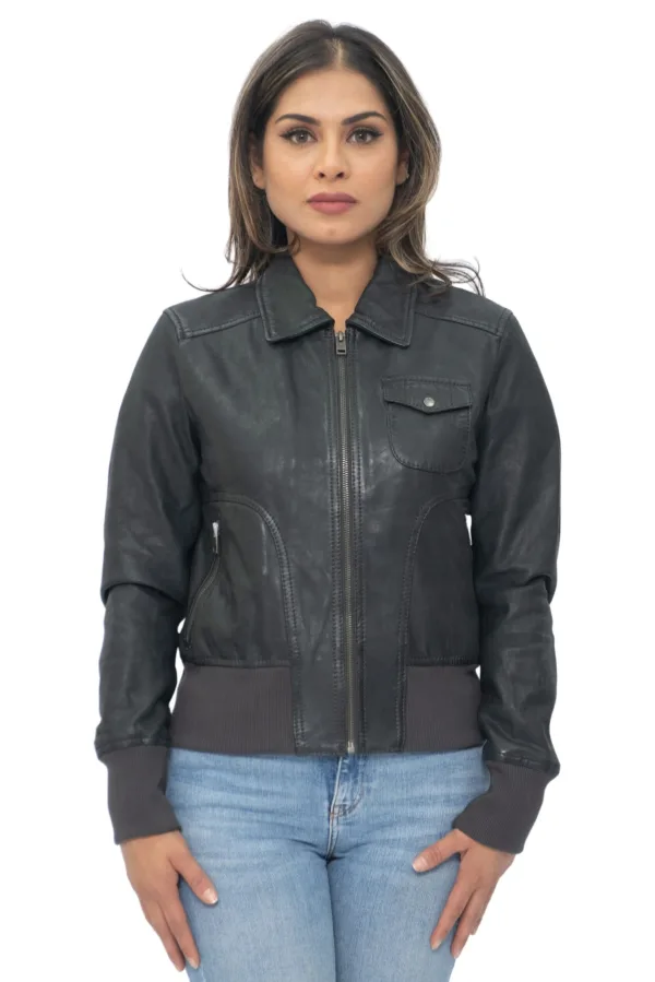 Blijf moeiteloos stijlvol met ons MA-1 Varsity-jack met leren kraag voor dames. Deze jas is gemaakt van zacht en soepel lamsnappaleer en heeft een luxe uitstraling. De licht gefreesde afwerking geeft het een trendy matte uitstraling. De jas heeft een puntige kraag, wat een vleugje verfijning aan je outfit toevoegt. Met twee buitenzakken op de taille en een opgestikte zak met klep op de borst heb je voldoende opbergmogelijkheden. De elastische manchetten en zoom zorgen voor een comfortabele en aansluitende pasvorm. De jas is verkrijgbaar in vier veelzijdige kleuren, zodat je de perfecte match voor jouw persoonlijke stijl kunt vinden. Deze jas, compleet met YKK-ritsen, combineert duurzaamheid en functionaliteit, waardoor het een must-have is voor je garderobe. • Zacht en soepel lamsnappaleer met een licht gefreesde, matte afwerking • Puntige kraag voor een verfijnde look • Twee buitenzakken op de taille en een opgestikte zak met klep op de borst voor gemakkelijk opbergen • Elastische manchetten en zoom voor een comfortabele pasvorm • Verkrijgbaar in vier veelzijdige kleuren die bij uw stijl passen