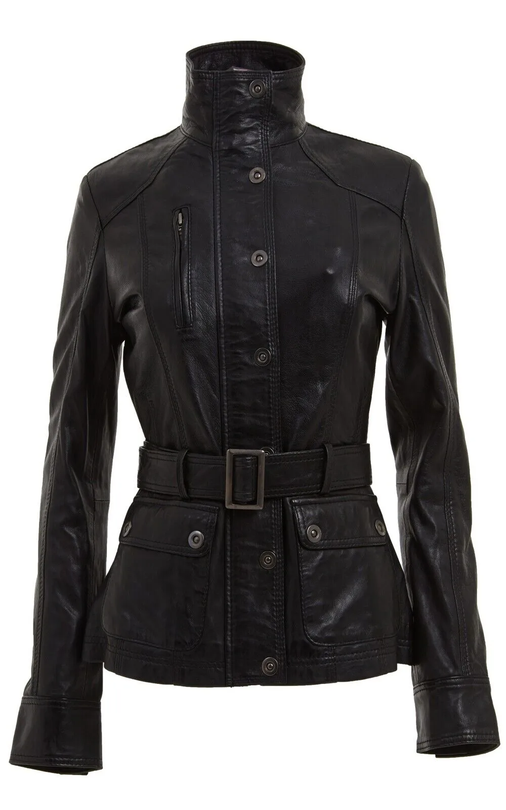 Verhoog je stijl met dit chique, op militairen geïnspireerde jack, compleet met opvallende designelementen die hem onderscheiden. Dit jack is gemaakt van 100% premium, ultrazacht nappaleer en combineert luxe met functionaliteit. Dit is wat hem opvalt: Hoge trechterkraag: De jas heeft een hoge trechterkraag die kan worden vastgemaakt of naar beneden gerold voor een veelzijdige en casual look, wat bijdraagt aan de algehele aantrekkingskracht. Elegantie met knopen: De drukknoopsluiting, die zich uitstrekt van de kraag tot onderaan de verstelbare tailleriem voegt een vleugje verfijning toe aan het ontwerp van de jas. Afneembare riem: De afneembare riem verbetert niet alleen de stijl van de jas, maar zorgt bovendien voor een flatterend, taps toelopend uiterlijk dat bij je lichaamsvorm past. Praktische zakken: De jas biedt praktische opbergruimte met een verborgen ritszak aan de voorkant borstzakken en twee klepzakken met knoopsluiting in de taille. Verstelbare manchetten: Door de knopen en ritsen bij de manchetten kun je de mouw aanpassen lengte naar wens, wat de veelzijdigheid van de jas vergroot. Met zijn slanke pasvorm, verstelbare tailleriem en een combinatie van klep- en ritszakken, valt dit jack in militaire stijl op een perfecte balans tussen mode en functionaliteit, waardoor het een veelzijdige toevoeging aan je garderobe is voor een chique en stijlvolle look