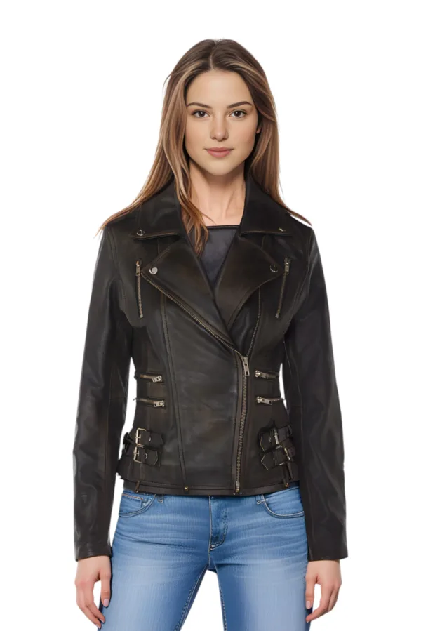 Dames leren vintage zwarte Brando bikerjack – Constantia Prijzen